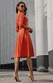 Элегантное платье из мягкой трикотажной ткани. Платье отрезное по линии талии. На полочке косые нагрудные вытачки. Вырез горловины круглый, не глубокий. Застежка на потайную молнию в среднем шве спинке. На юбке по центру расположена глубокая встречная складка. Рукав втачной длинной 3/4. Платье дополняет узкий пояс контрастного цвета.