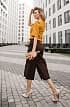 Брюки "палаццо" из плотного трикотажа на завышенной линии талии. Верх брюк обработан широким подкройным поясом. Застежка на потайную молнию в боковом шве. К низу брюки расширены. Благодаря используемому трикотажного материалу, брюки имеют отличную посадку.