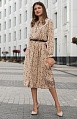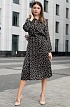 Романтичное платье свободного силуэта выполенно из приятной шековистой ткани с принтом. Платье отрезное по линии талии. Силуэт платья достигнут благодаря резинке по линии талии. На полочке декоративная планка и глубокий вырез. Юбка платья широкая, красиво драпипуется в складки. Рукав широкий, снизу собран на манжет.