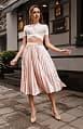 Юбка со складками «гофре» из шикарной ткани «бархат». Юбка имеет форму «солнце». Верх юбки обработан поясом. Застежка на потайную молнию в боковом шве. Длинна юбки "миди".